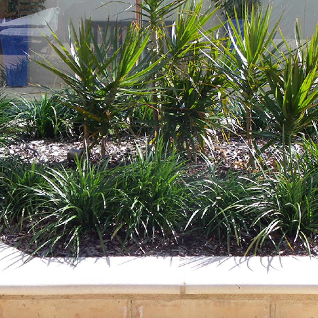 New soil, plants and a rich composted mulch were added. The plants are watered by an automatic system of Inline Drippers ensuring the area looks great all year!