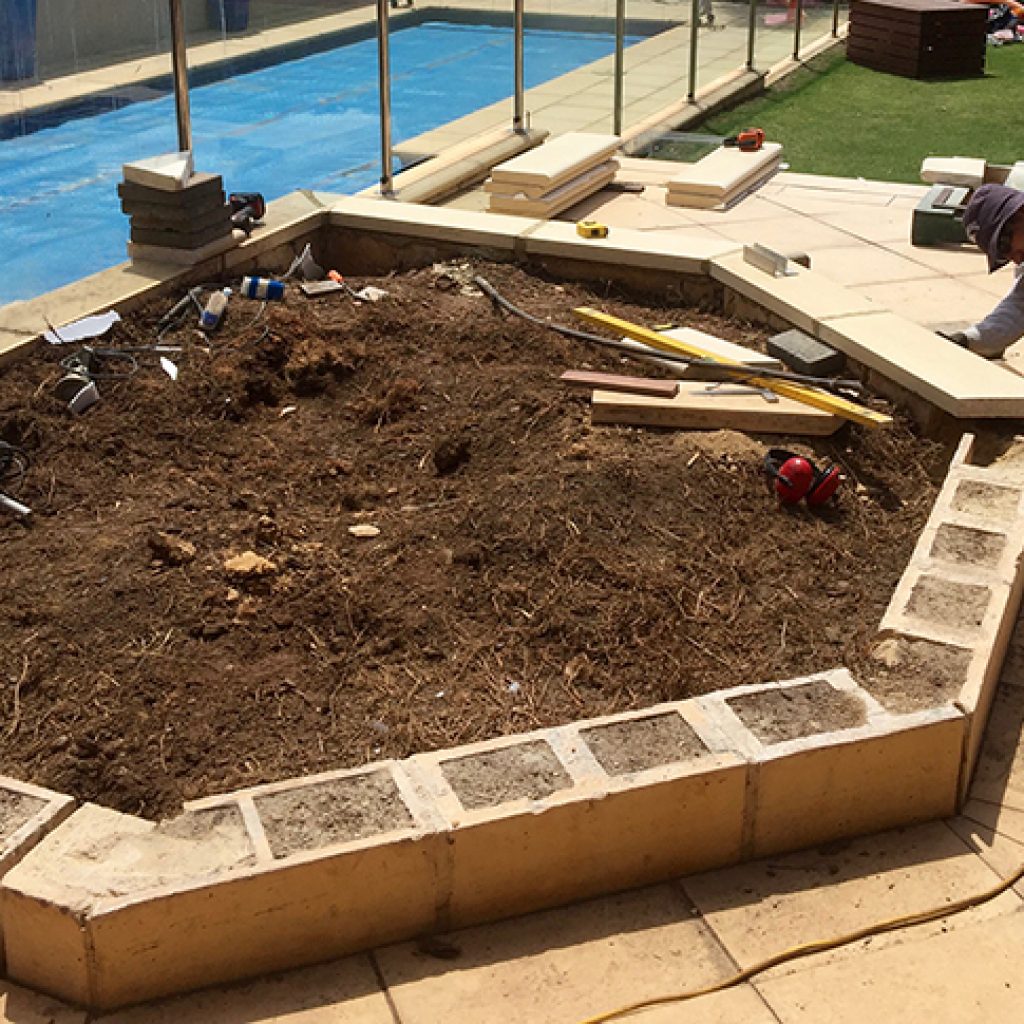 Jim and Alison asked us rebuild, replant and irrigate the area as it was the main focal point between the outdoor kitchen deck and the pool.